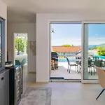 Deze 3-slaapkamer Villa Mila Sveti Vid-Miholjice ligt op 3 km afstand van Valica Cove en biedt een terras met uitzicht op de tuin.